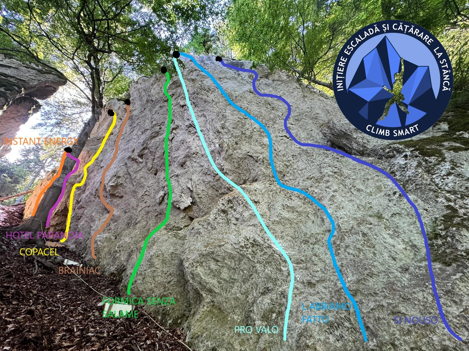 În luna aprilie am mers pentru prima oară, la inițiativa lui Lucian Guțu, pentru a explora o zonă cu stâncă din apropierea Sf. Ana. La a doua deplasare, după ce s-a obținut acordul pentru reechiparea traseului deschis cu ani în urmă (L’abbiamo Fatto – am lăsat pitoanele), am reușit împreună să deschidem câte două trasee. Ulterior, am revenit singur de mai multe ori și am lucrat la restul traseelor.